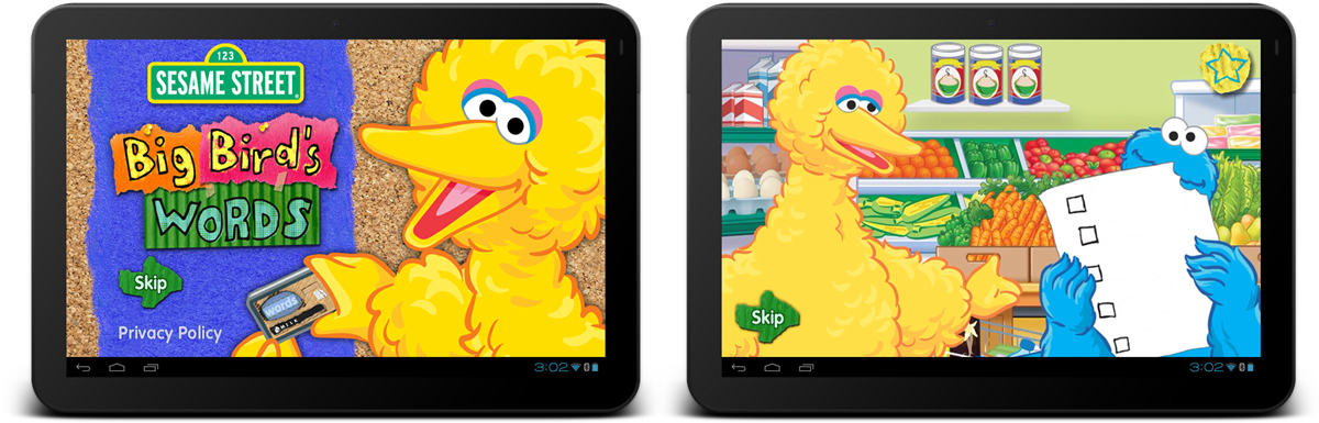 deliverables snapsots some select app snapshots of the Big Bird's Words as featured on Android tablet