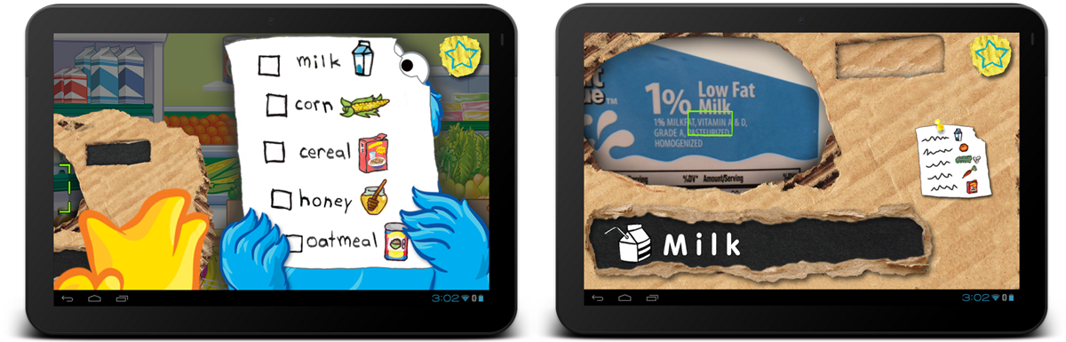 Big Bird guides children through an illustrated 'find the word' activity and then prompts them to find the words in the real world using the app's Word-O-Scope. When found, kids are shown how the word relates to others on a word tree screen.